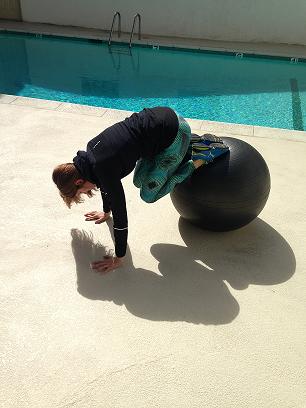 This advanced exercise calls for pushups on the ball itself. If you cannot safely balance on the ball due to lack of upper body strength, then you have two other options. Either place the ball up against a wall and then do the pushups, or do the pushups on the floor altogether and build yourself up to a stability ball pushup. If you can do less than the recommended rep range well, then do what you can and work your way up to ten. It is all about the quality of movement vs. the quantity in challenging exercises as such.